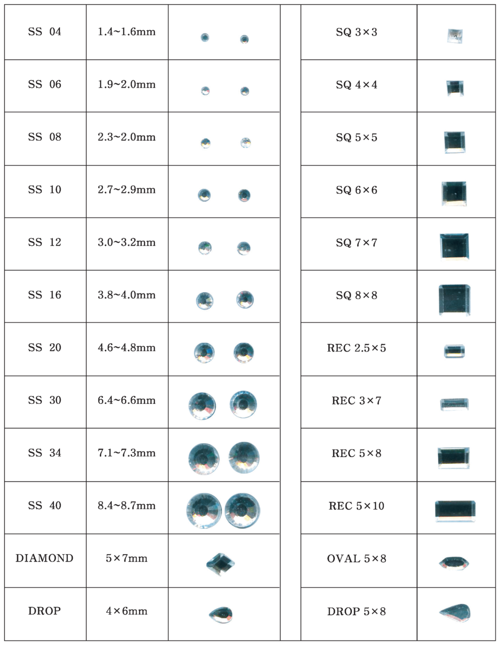 MC HOTFIX SHAPE & SIZE