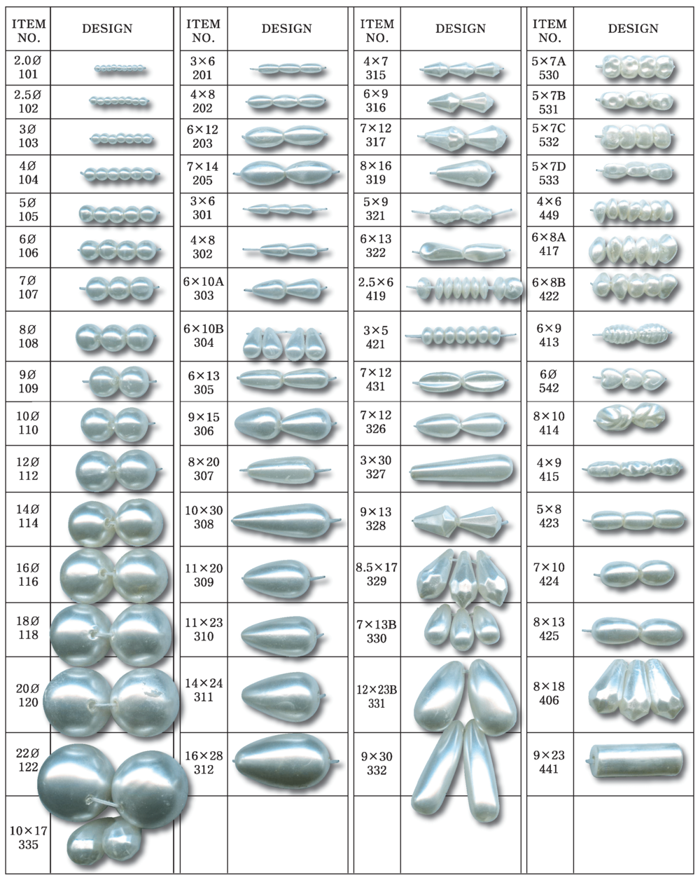 PLASTIC PEARL DESIGN & SIZE